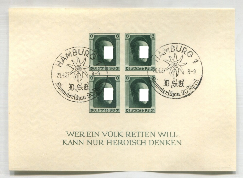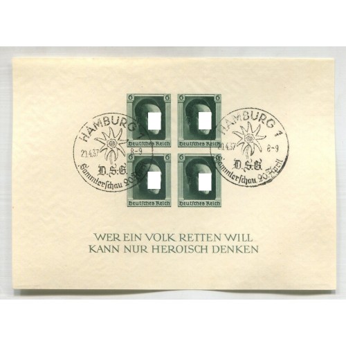 ALEMANIA 1937 BLOQUE Yv. 9 SIN DENTAR USADO DE LUJO CON MATASELLO ESPECIAL TEMA FLORES +45 €