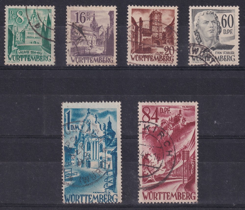 ALEMANIA ESTAMPILLA SEGUNDA GUERRA MUNDIAL OCUPACION ALIADA 1948 Yv 22/7 SERIE COMPLETA ZONA FRANCESA DE WURTTEMBERG 17 EUROS