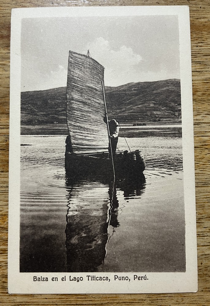 PERU ABORIGEN EN LAGO TITICACA ANTIGUA TARJETA POSTAL