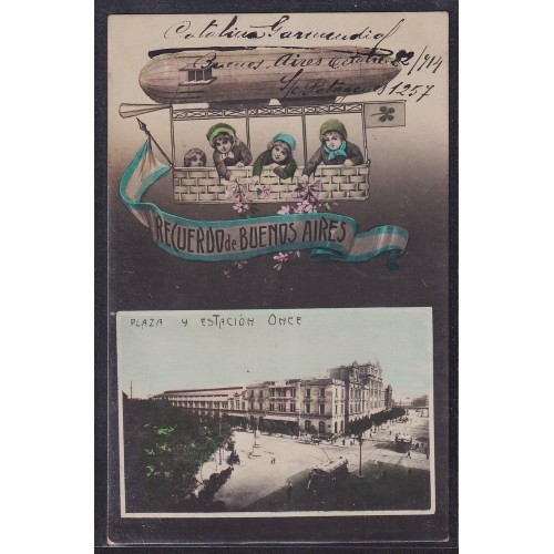 ESTACION FERROCARRIL ONCE ANTIGUA TARJETA POSTAL A COLOR
