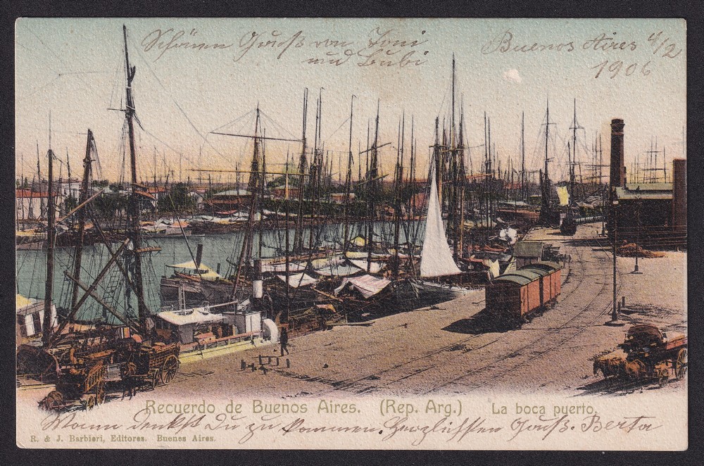 LA BOCA EL PUERTO Y VIAS DE FERROCARRIL ANTIGUA TARJETA POSTAL CIRCULADA 1906