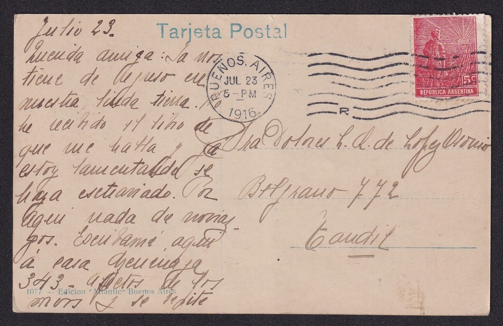 CALLE ARENALES BUENOS AIRES CIUDAD ANTIGUA TARJETA POSTAL