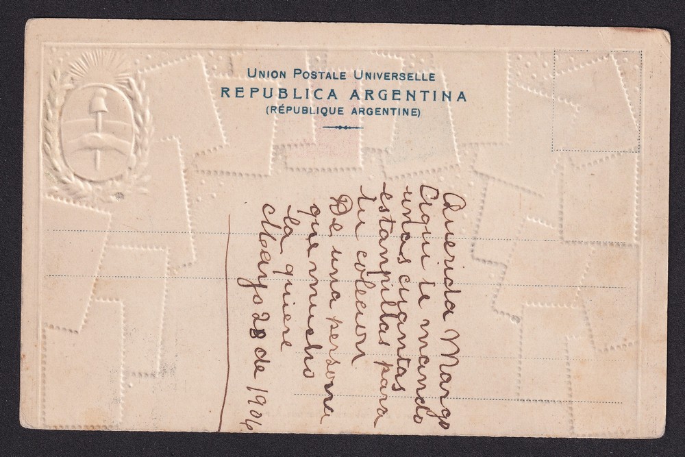 ARGENTINA 1906 ANTIGUA TARJETA POSTAL CON RELIEVE