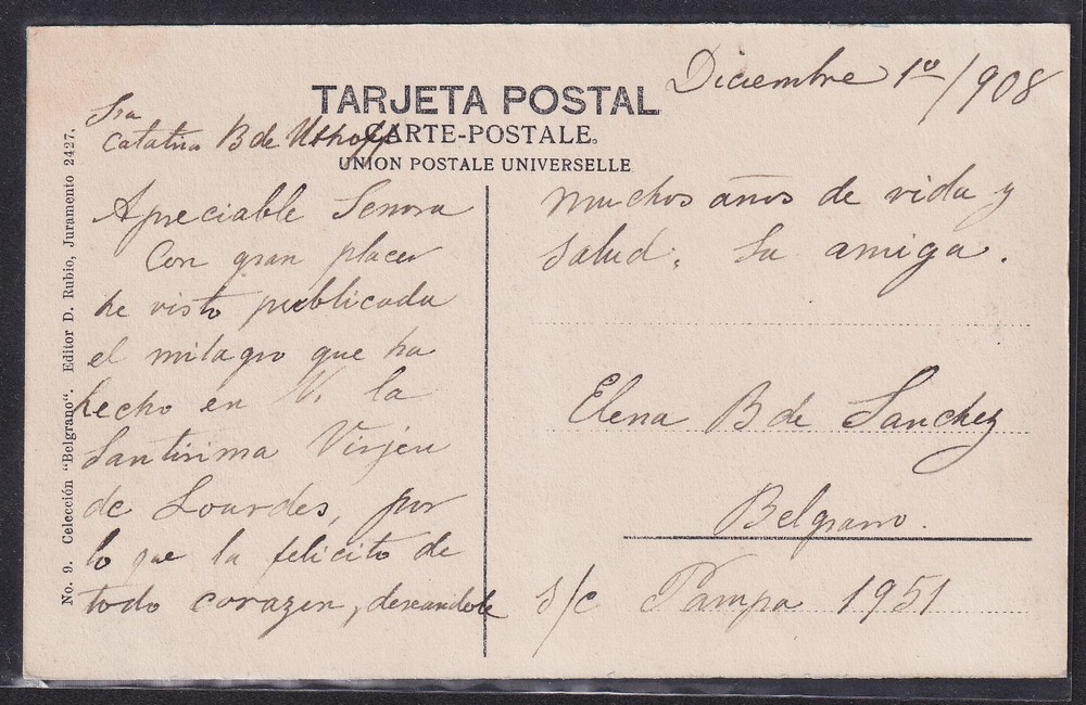 BELGRANO ANTIGUA TARJETA POSTAL