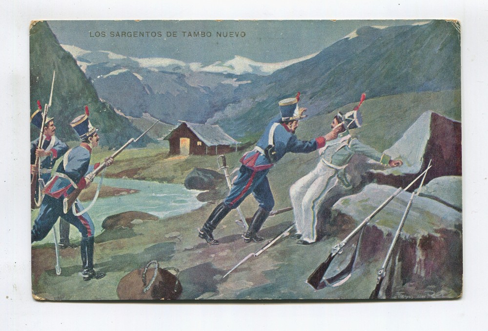 CENTENARIO 1810 - 1910 PATRIOTICA ANTIGUA TARJETA POSTAL LOS SARGENTOS DE TAMBO NUEVO