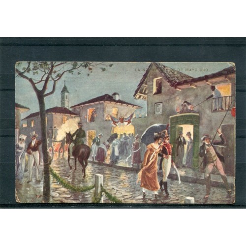 CENTENARIO 1810 - 1910 PATRIOTICA ANTIGUA TARJETA POSTAL LA NOCHE DEL 25 DE MAYO