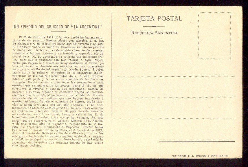 CENTENARIO 1810 - 1910 PATRIOTICA ANTIGUA TARJETA POSTAL CRUCERO LA ARGENTINA