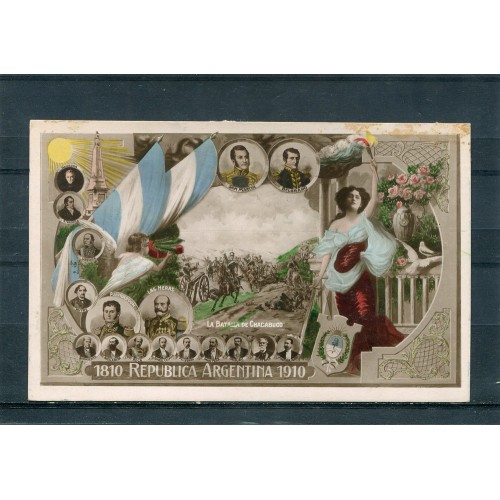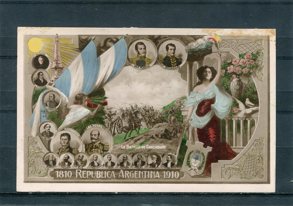 CENTENARIO 1810 - 1910 PATRIOTICA ANTIGUA TARJETA POSTAL BATALLA DE CHACABUCHO