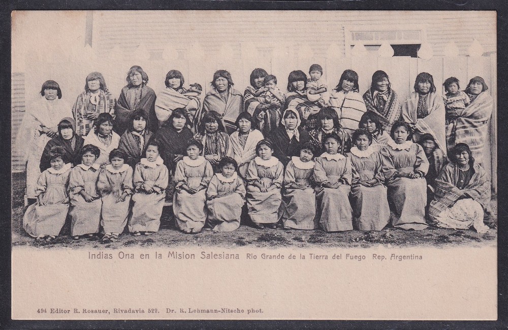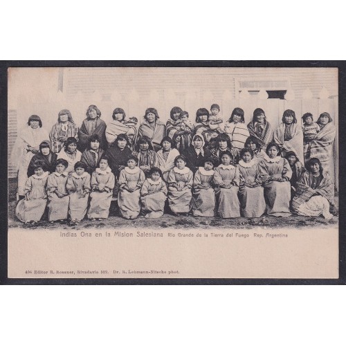 INDIOS ONAS MISION SALESIANA TIERRA DEL FUEGO ANTIGUA TARJETA POSTAL GRUPO DE MUJERES