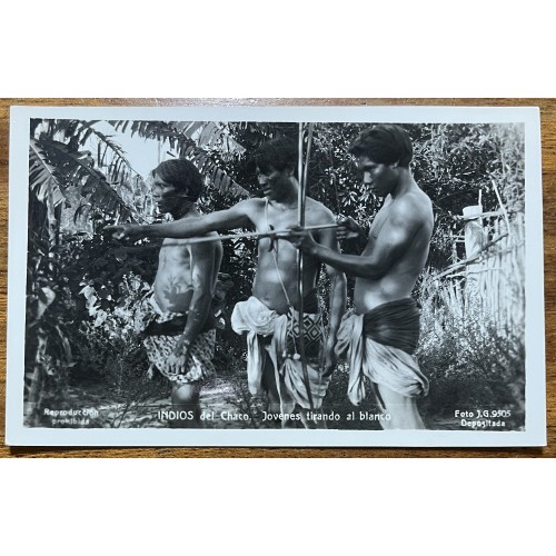 ABORIGENES INDIOS DEL CHACO TIRANDO AL BLANCO ANTIGUA TARJETA POSTAL INDIGENAS
