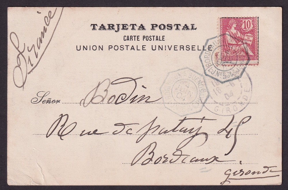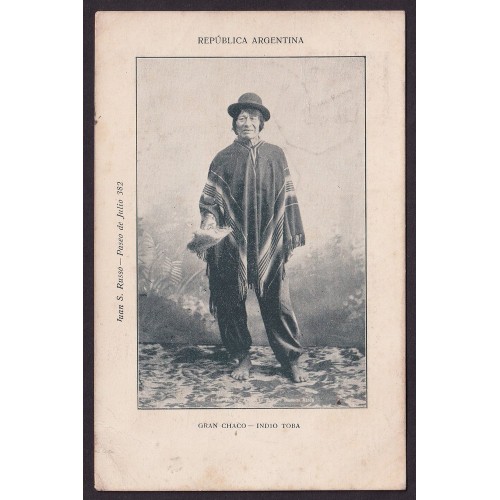INDIO TOBA CHACO RARA ANTIGUA TARJETA POSTAL ENVIADA A FRANCIA DESPACHADA A BORDO DE BARCO PAQUEBOT