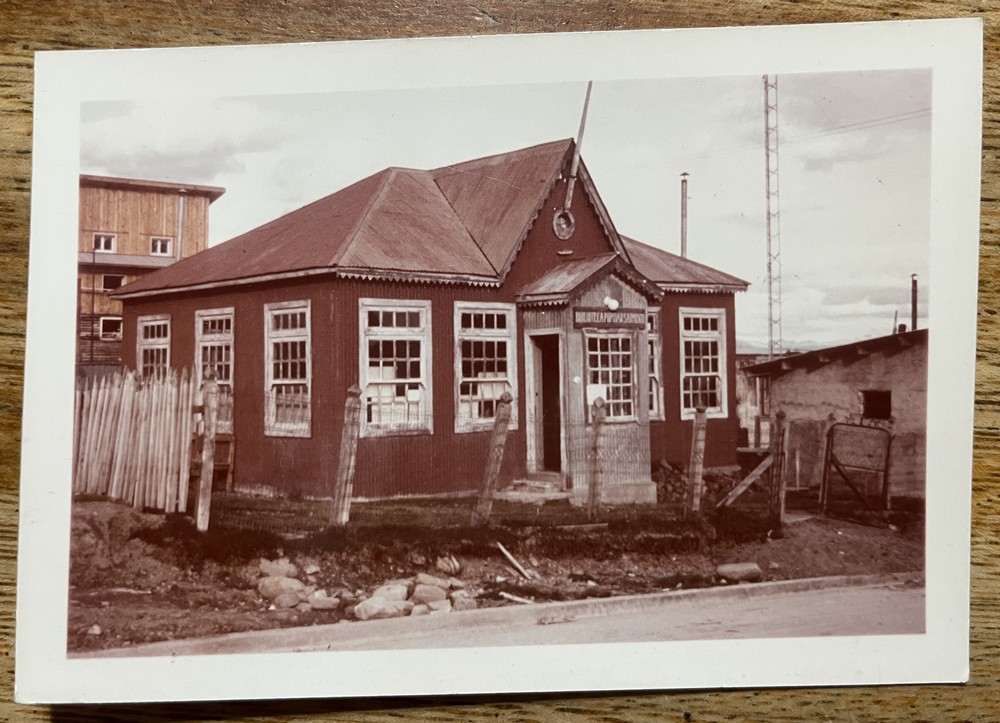 USHUAIA TIERRA DEL FUEGO ANTIGUA FOTO UN POCO MAS CHICA QUE TARJETA POSTAL BIBLIOTECA POPULAR SARMIENTO