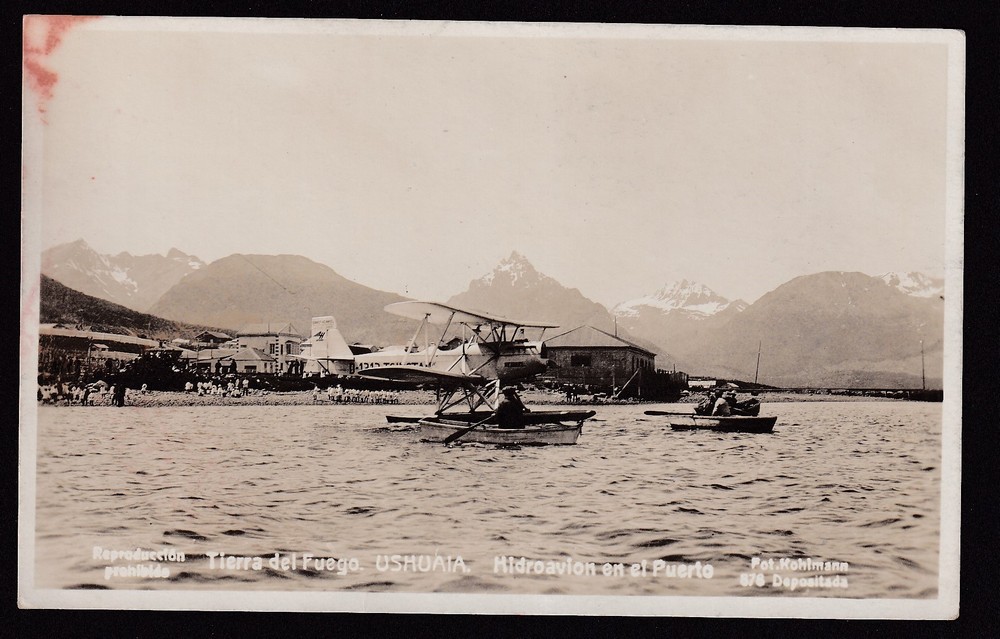 USHUAIA TIERRA DEL FUEGO HIDROAVION DE GUNTER PLUSCHOW ANTIGUA TARJETA POSTAL RARISIMA
