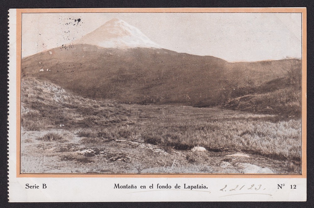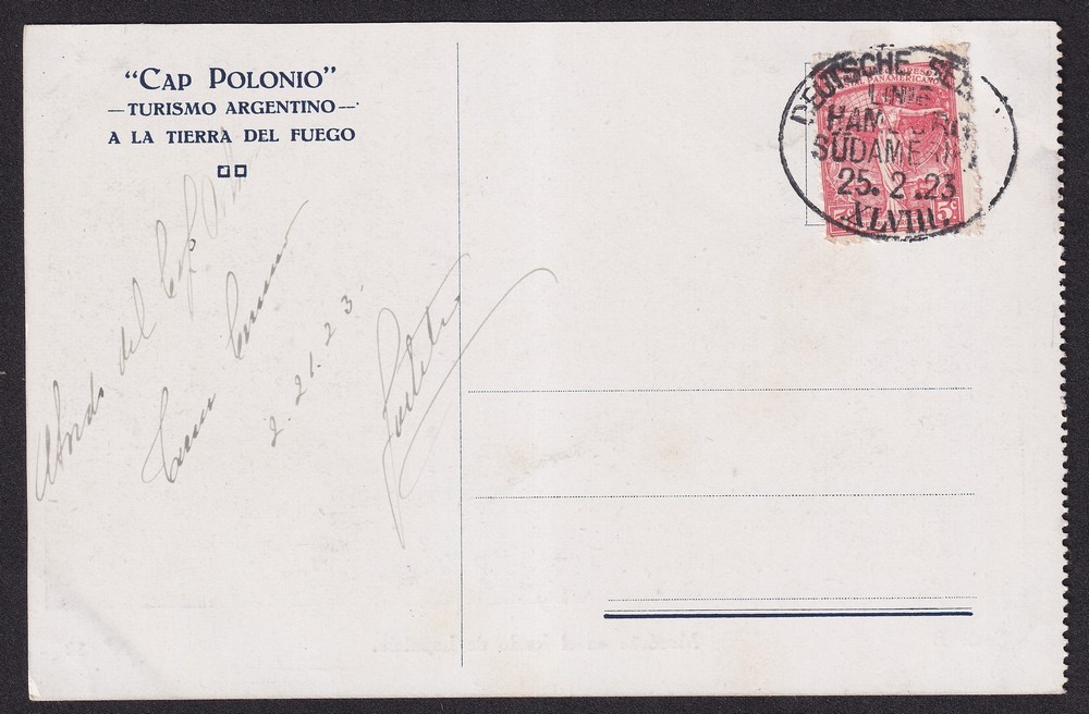 TIERRA DEL FUEGO TARJETA POSTAL DEL CAP POLONIO CON MATASELLO A BORDO DEL BARCO DE HSDG CON VISTA DE LAPATAIA PATAGONIA