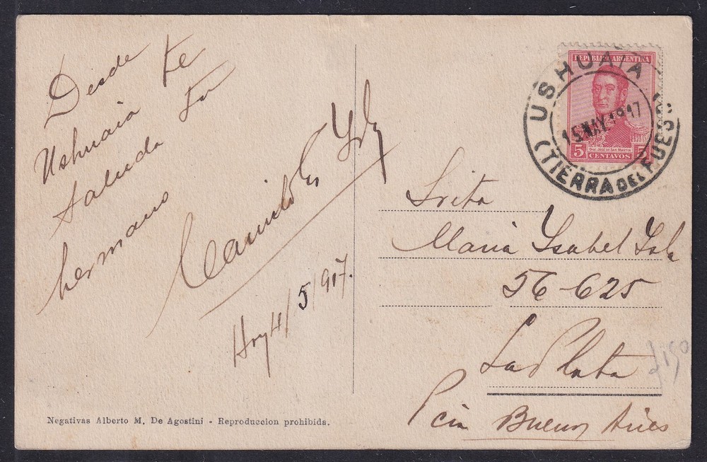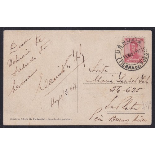USHUAIA ANTIGUA TARJETA POSTAL 1917 CIRCULADA