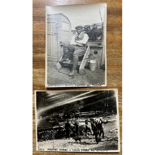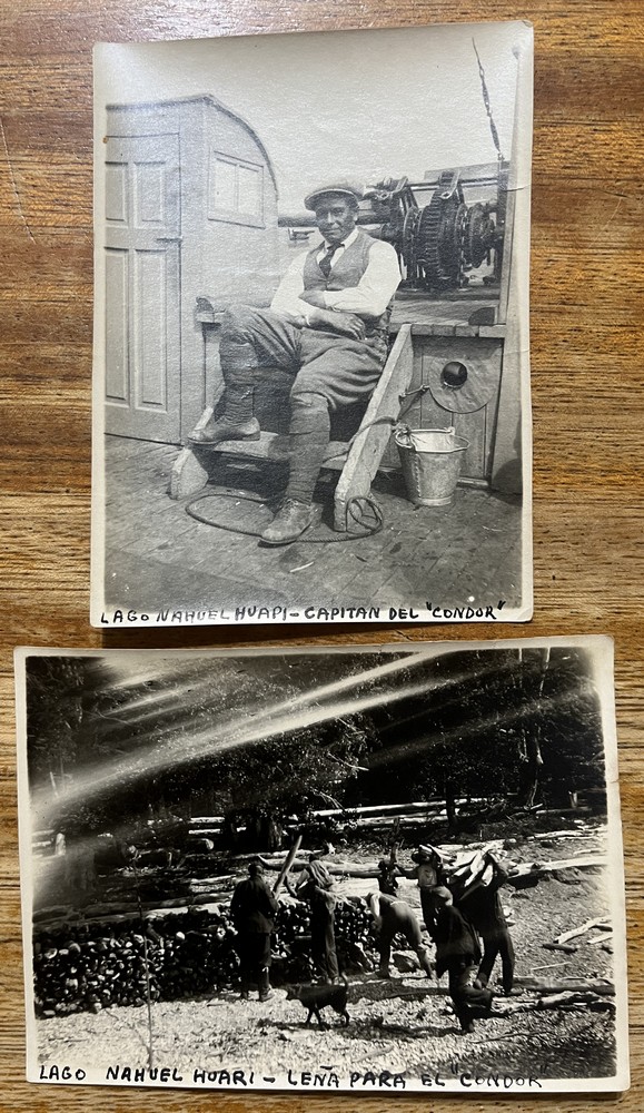 LAGO NAHUEL HUAPI 2 FOTOS DE TAMAÑO UN POCO MAS CHICA QUE UNA POSTAL LEÑA PARA EL BARCO EL CONDOR Y SU CAPITAN