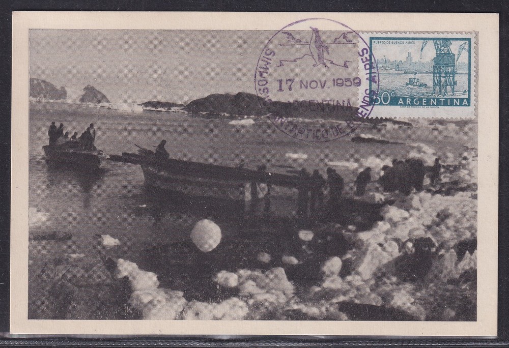 ANTARTIDA ARGENTINA 1959 TARJETA DESEMBARCANDO MATERIALES