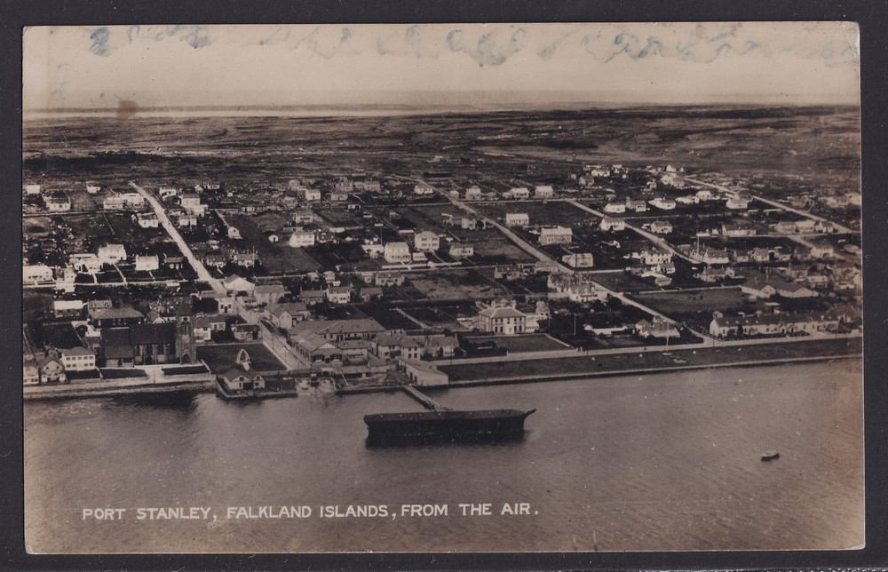 ISLAS MALVINAS ANTIGUA TARJETA POSTAL VISTA DE SATNLEY TOMADA DESDE EL AIRE