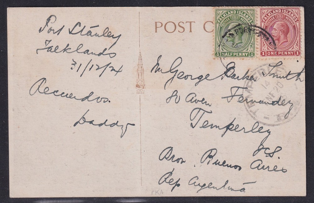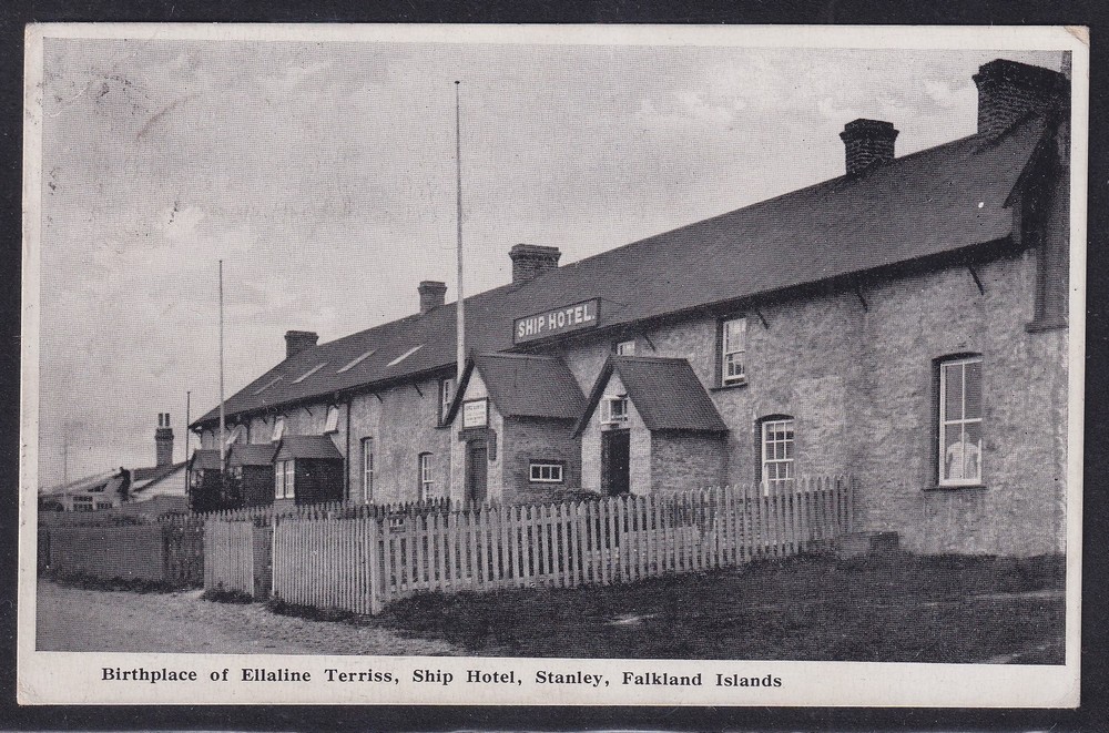 MALVINAS 1924 TARJETA POSTAL DEL SHIP HOTEL CIRCULADA DESDE STANLEY A TEMPERLEY, RARA