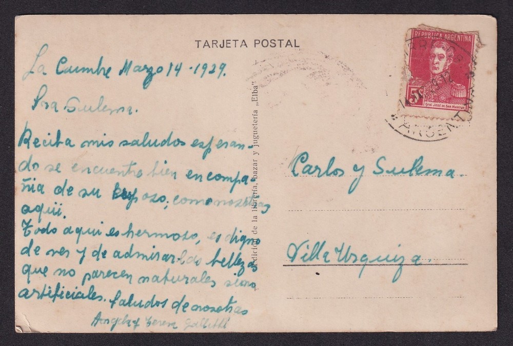 LA CUMBRE SIERRAS DE CORDOBA ANTIGUA TARJETA POSTAL