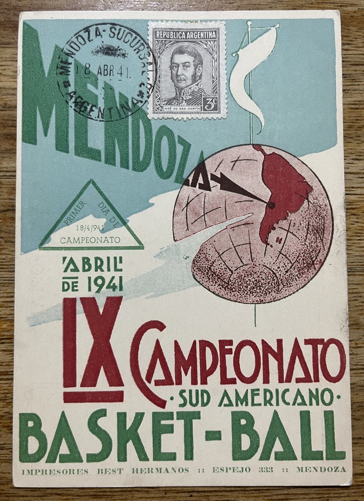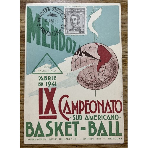 BASKETBALL 1941 ANTIGUA TARJETA POSTAL PUBLICITARIA DEL CAMPEONATO SUDAMERICANO RARA