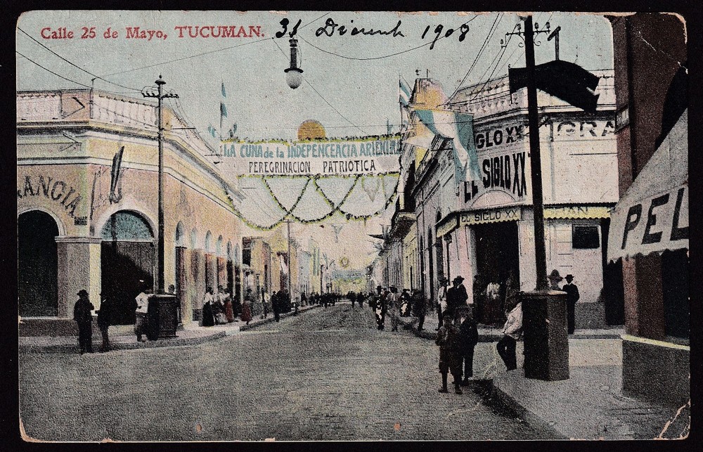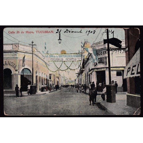 TUCUMAN ANTIGUA TARJETA POSTAL CALLE 25 DE MAYO, FESTEJOS PATRIOS 1909 RARA