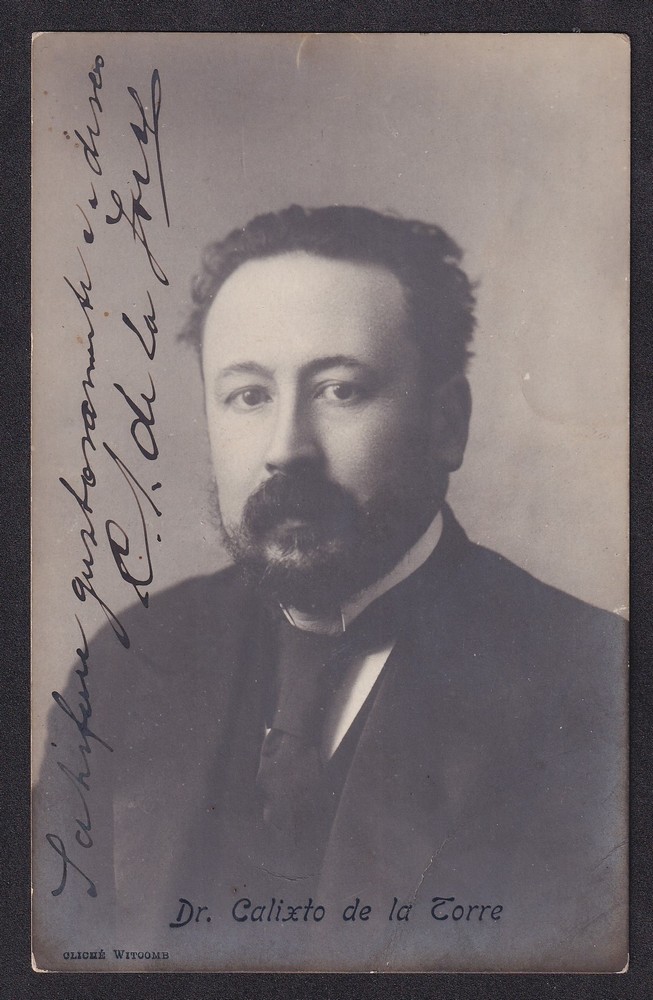 DR CALIXTO DE LA TORRE ANTIGUA TARJETA POSTAL CON FIRMA AUTOGRAFA