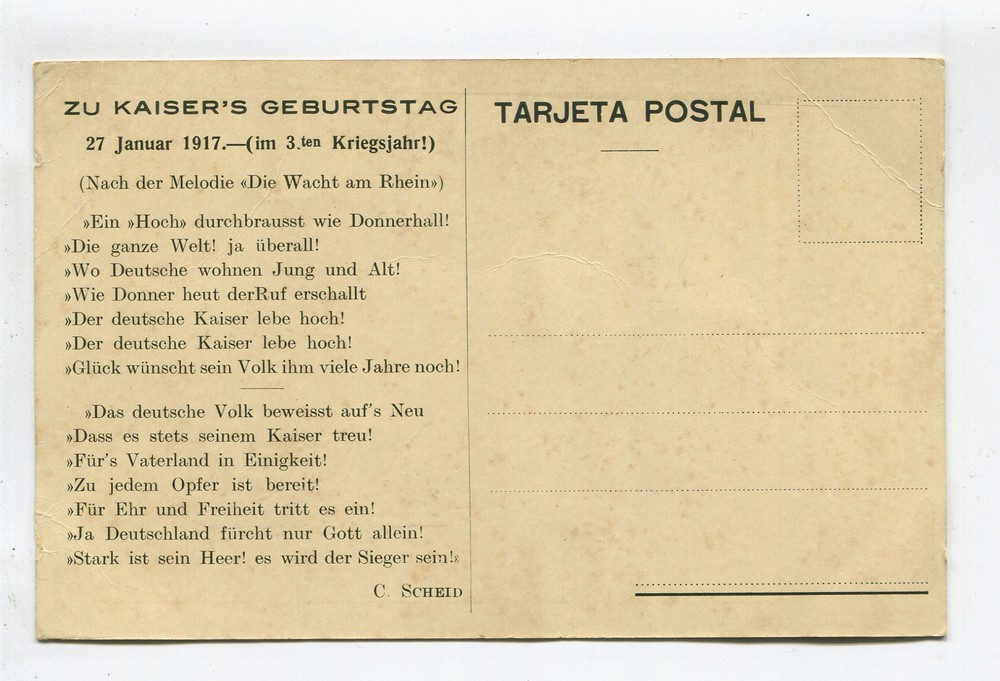 KAISER WILHELMS II DE ALEMANIA ANTIGUA TARJETA POSTAL EDITADA EN LA ARGENTINA, RARA 1917