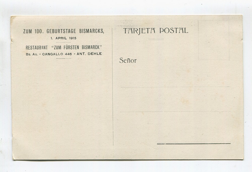 BISMARCK DE ALEMANIA ANTIGUA TARJETA POSTAL PUBLICITARIA DE RESTAURANT EN BUENOS AIRES, RARA