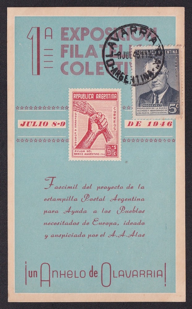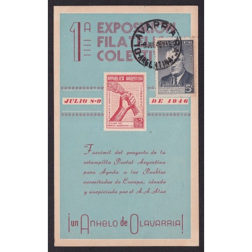 PERONISMO ANTIGUA TARJETA POSTAL EXPOSICION 1946 OLAVARRIA
