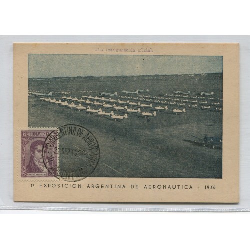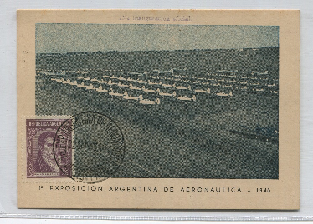 ARGENTINA 1946 PERONISMO TARJETA POSTAL EXPOSICION AERONAUTICA EN EL DIA DE LA INAUGURACION