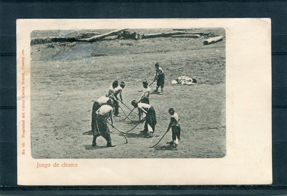INDIOS JUGANDO CHUECA CONCEPCION CHILE ANTIGUA TARJETA POSTAL ABORIGENES