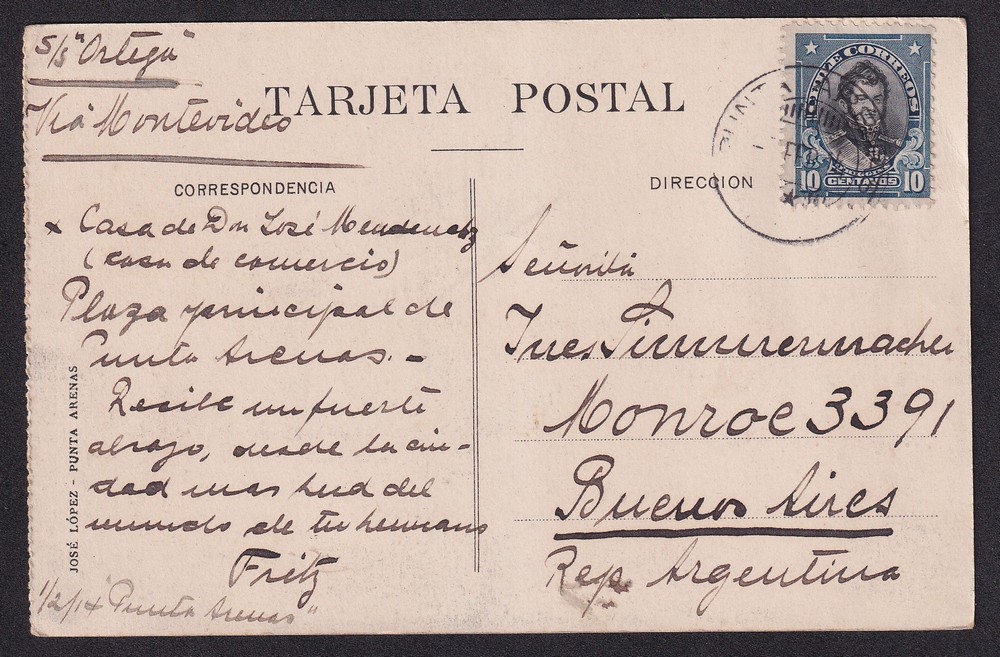 ULTIMA ESPERANZA CHILE CASA JOSE MENENDEZ ANTIGUA TARJETA POSTAL CIRCULADA DESDE PUNTA ARENAS