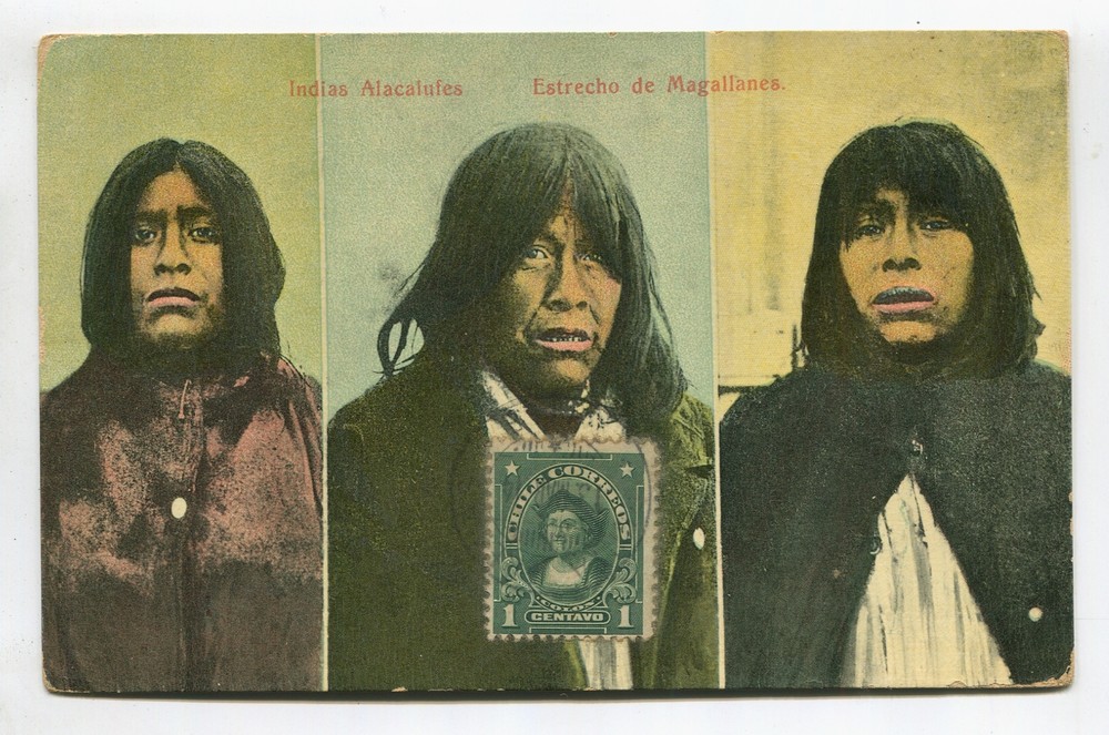 INDIAS ALACALUFES ESTRECHO DE MAGALLANES CHILE ANTIGUA TARJETA POSTAL ABORIGENES