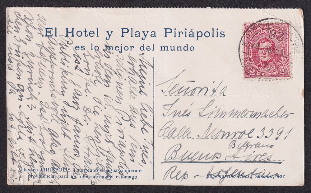 PIRIAPOLIS URUGUAY ANTIGUA TARJETA POSTAL GRAN HOTEL 1917