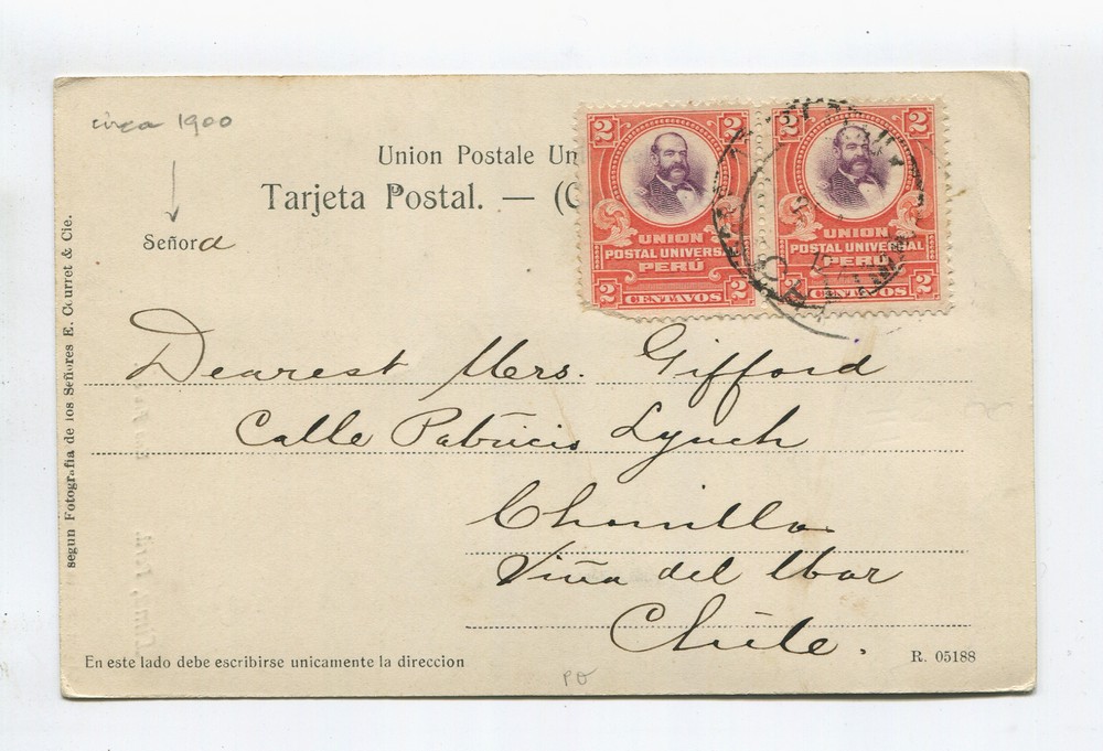 PERU RARA TARJETA POSTAL DE VENDEDORA DE FRUTAS CIRCULADA