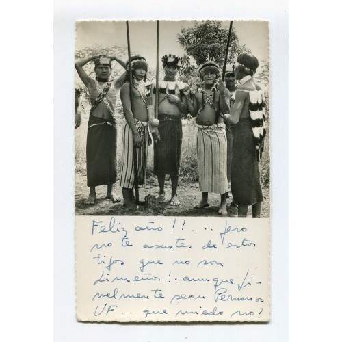 INDIOS ACHUALES JIBAROS PERU RARISIMA ANTIGUA TARJETA POSTAL