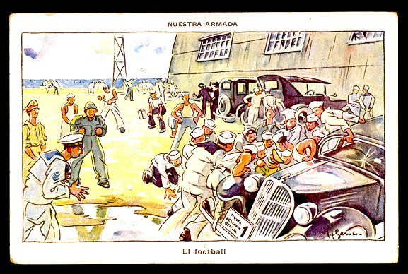 BARCOS MARINA NACIONAL HUMORISTICA EL FOOTBALL ANTIGUA TARJETA POSTAL