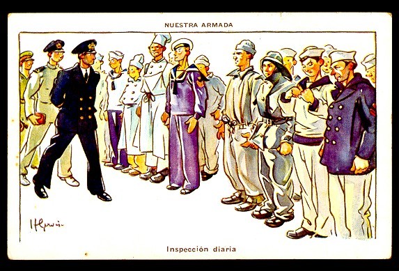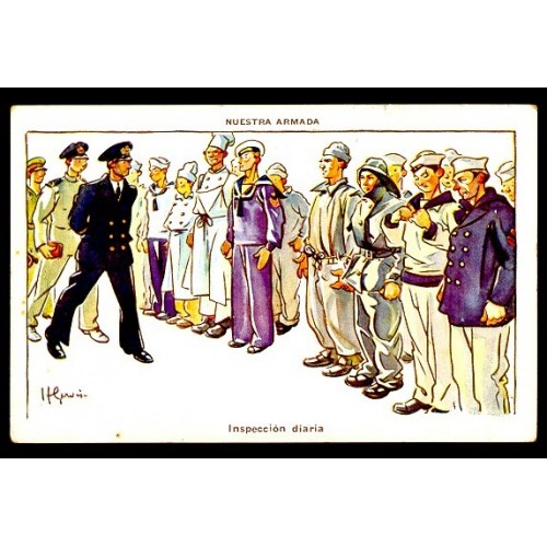 BARCOS MARINA NACIONAL HUMORISTICA INSPECCION DIARIAANTIGUA TARJETA POSTAL