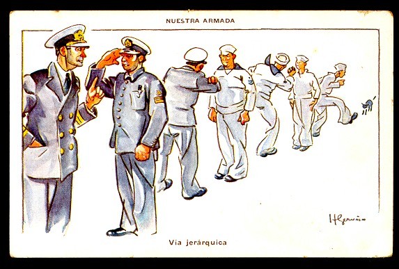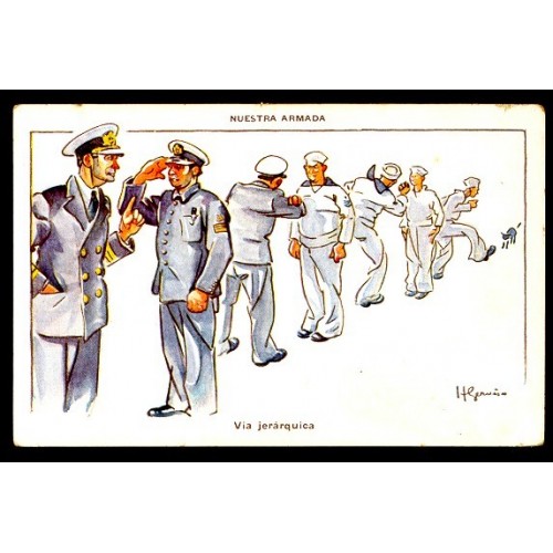 BARCOS MARINA NACIONAL HUMORISTICA VIA JERARQUICAANTIGUA TARJETA POSTAL