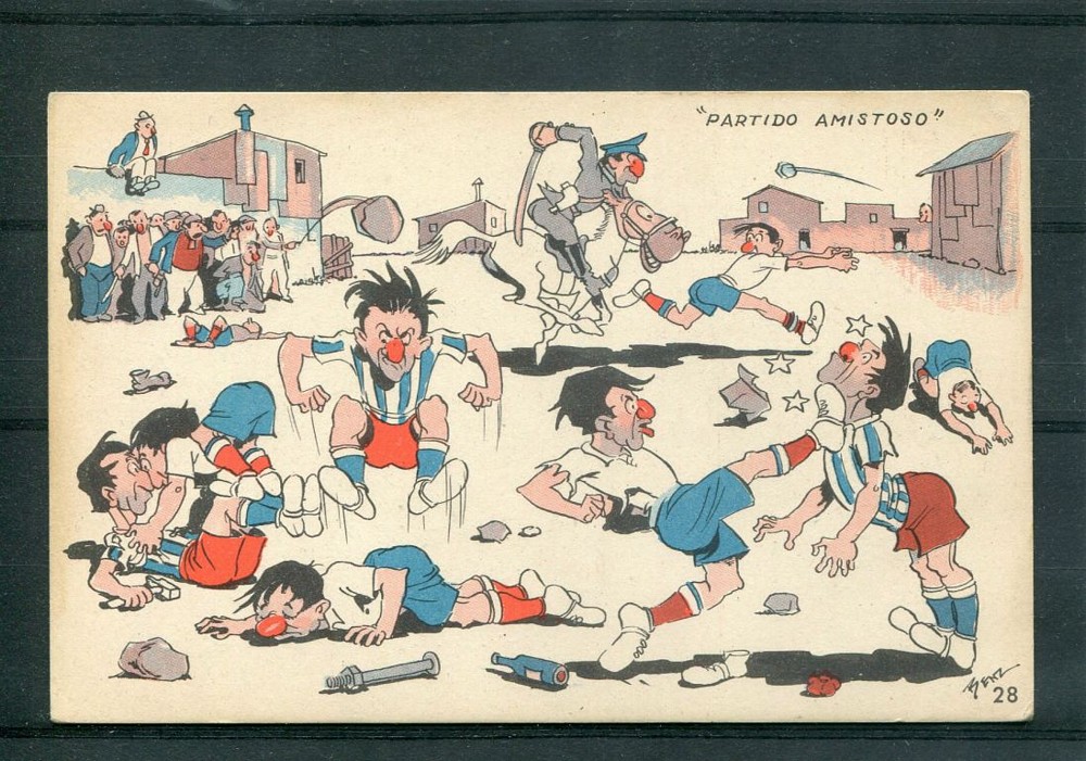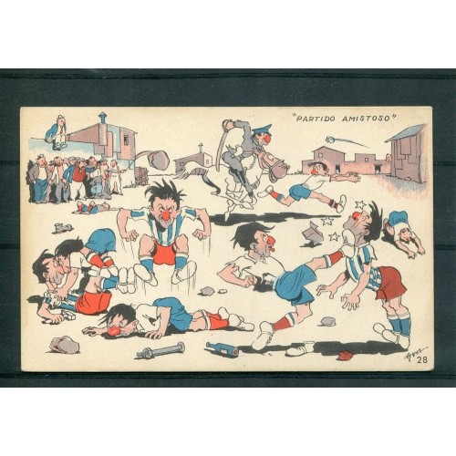 HUMORISTICA FUTBOL PARTIDO AMISTOSO DIBUJANTE BENZ ANTIGUA TARJETA POSTAL