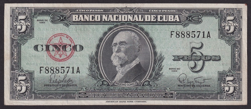 CUBA 1960 5 PESOS BILLETE EN BUEN ESTADO