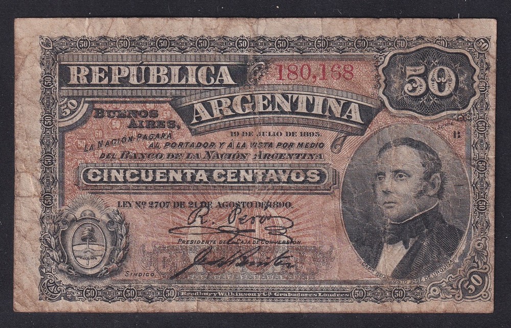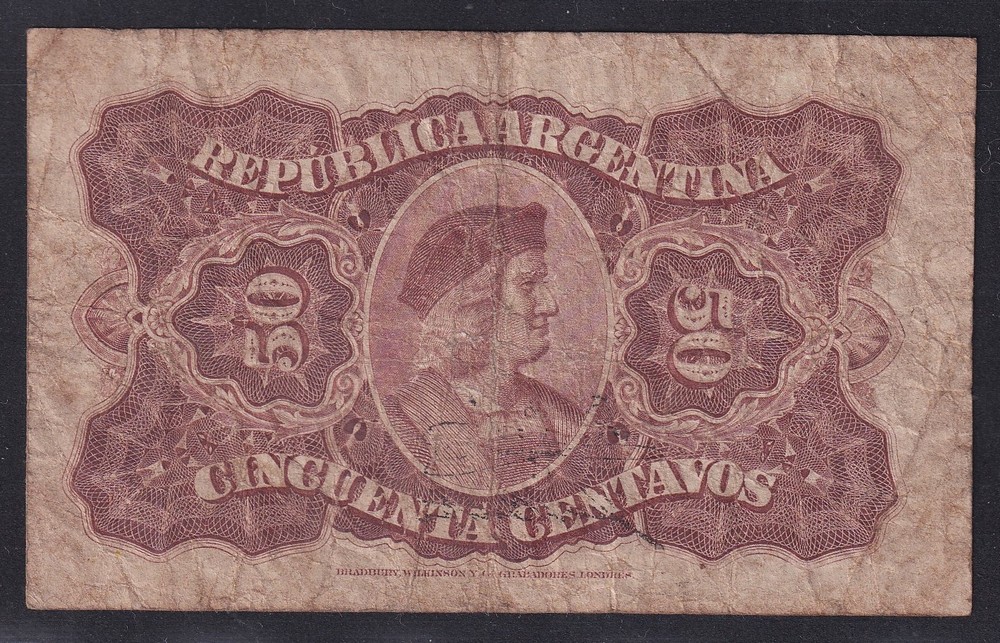 ARGENTINA COL. 053 BILLETE DE $ 0,50 FRACCIONARIO AÑO 1890