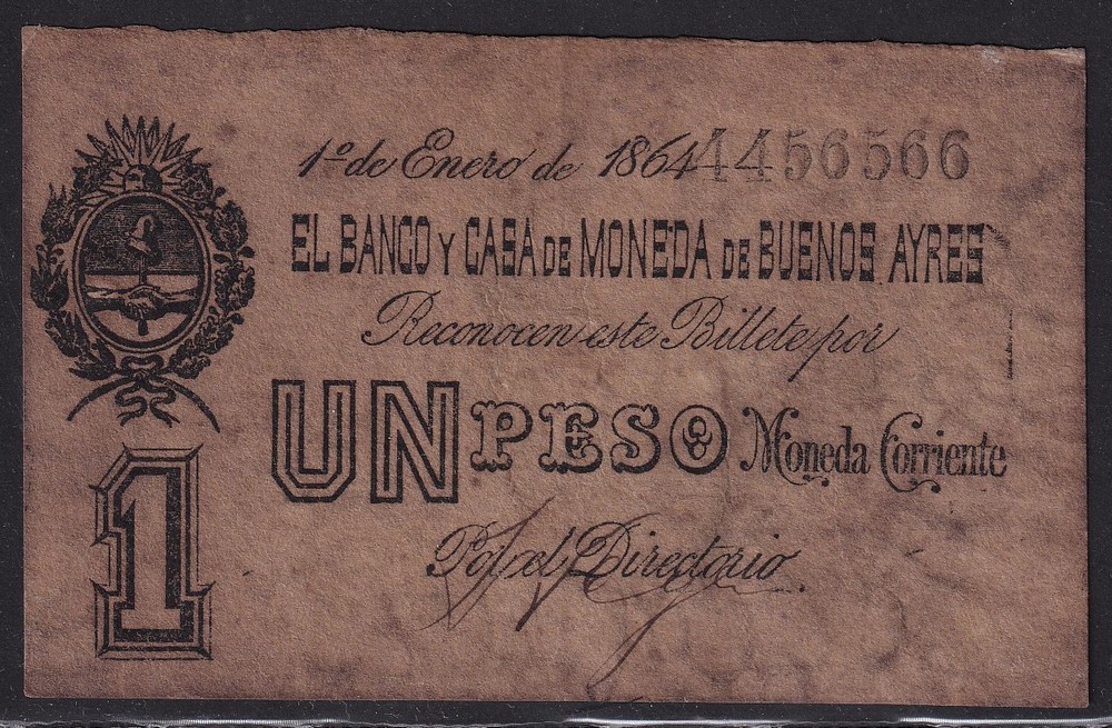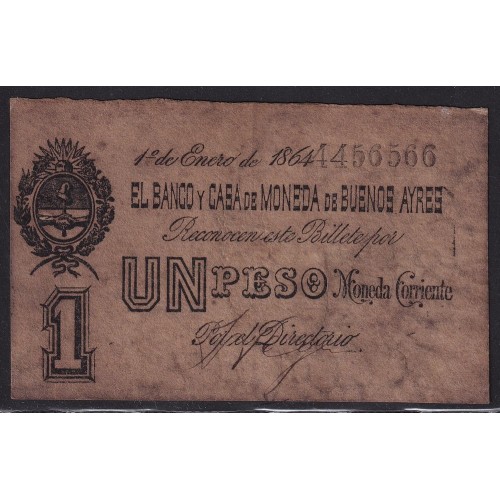 ARGENTINA 1864 BILLETE DE $ 1 PROVINCIA BUENOS AIRES