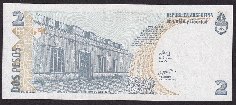 ARGENTINA COL. 754b BILLETE DE $ 2 CONVERTIBLES DE CURSO LEGAL SIN CIRCULAR UNC