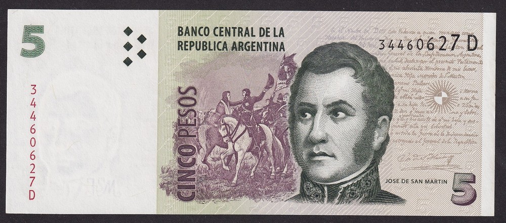 ARGENTINA COL. 768a BILLETE DE $ 5 CONVERTIBLES DE CURSO LEGAL SIN CIRCULAR UNC