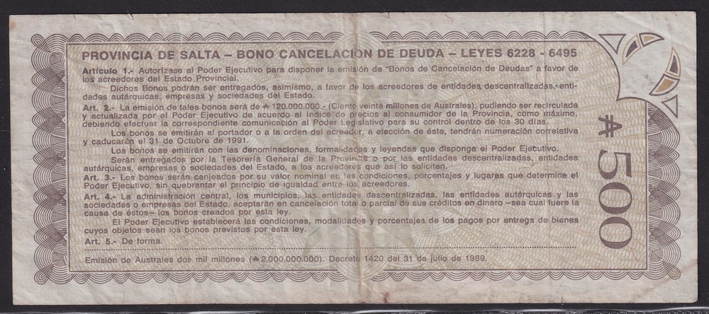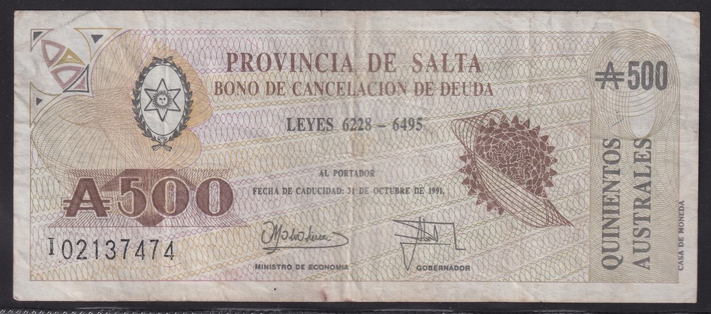 ARGENTINA EC. 071 BONO BILLETE DE EMERGENCIA SALTA