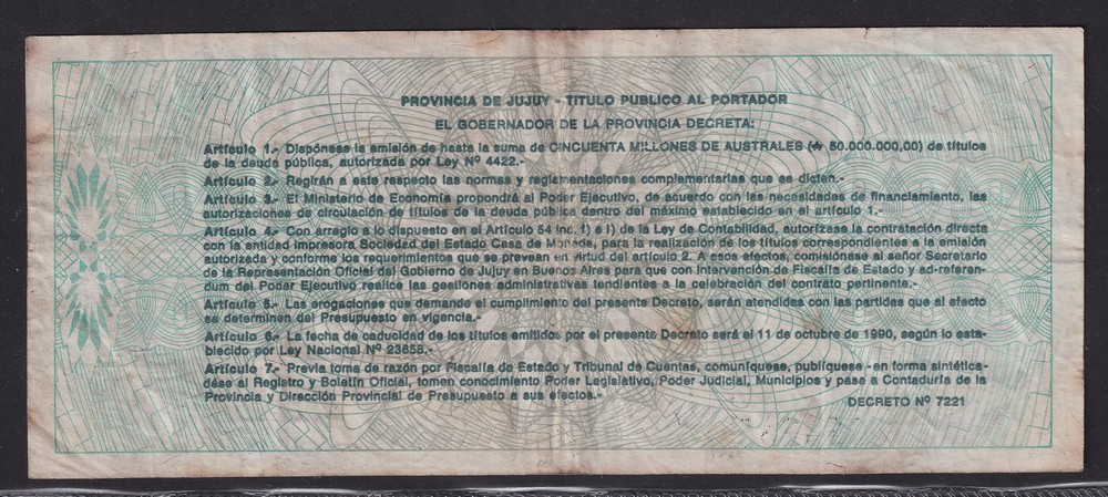 ARGENTINA EC. 017 BONO BILLETE DE EMERGENCIA JUJUY