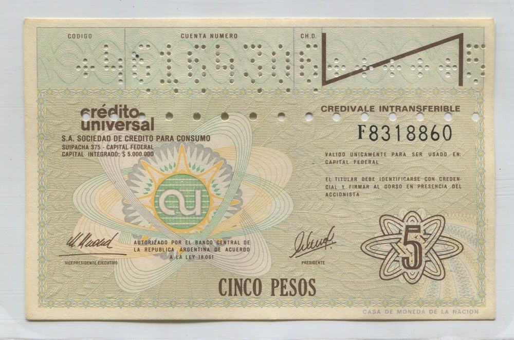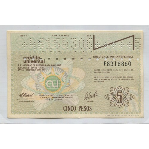 ARGENTINA EC. BONO BILLETE DE EMERGENCIA CREDITO UNIVERSAL $ 5