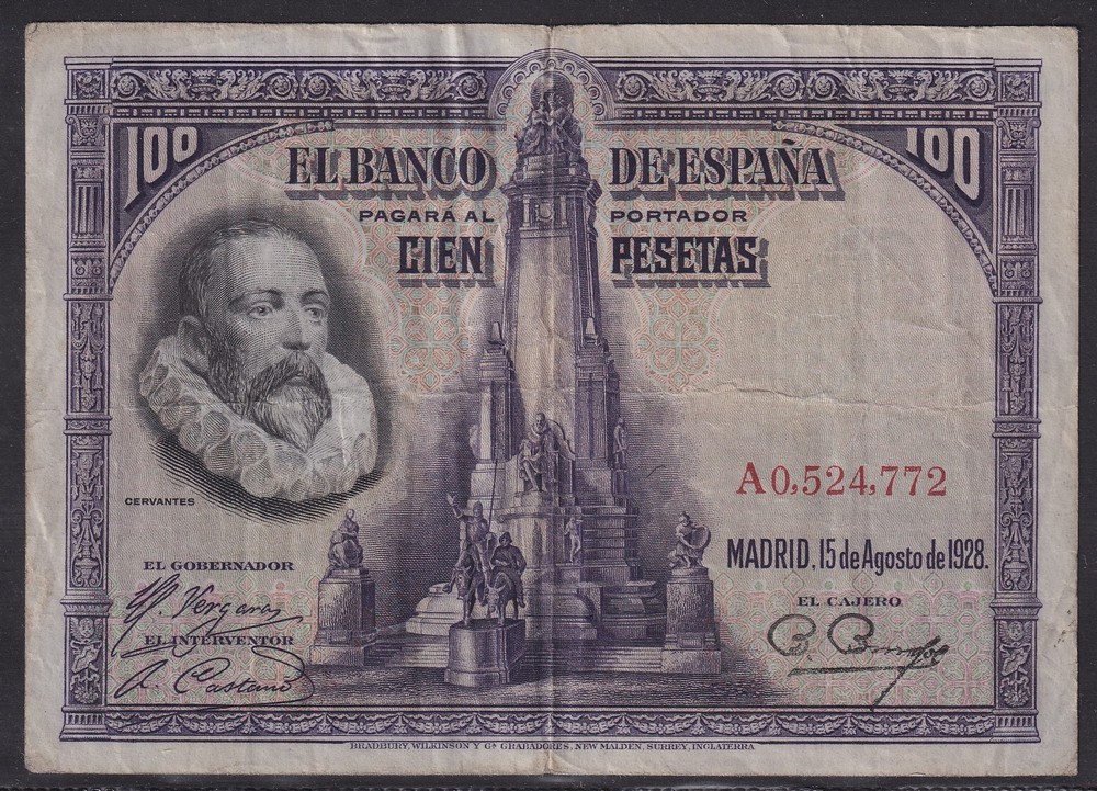 ESPAÑA 1928 BILLETE DE 100 PESETAS